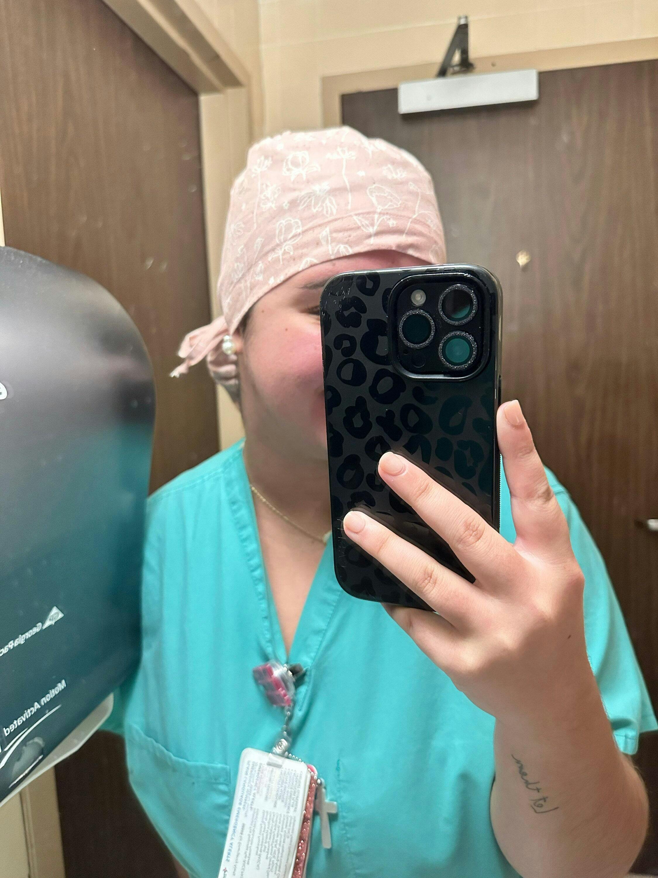 Pink and white Ponytail scrub cap for women with satin lined option by Paradise Caps.