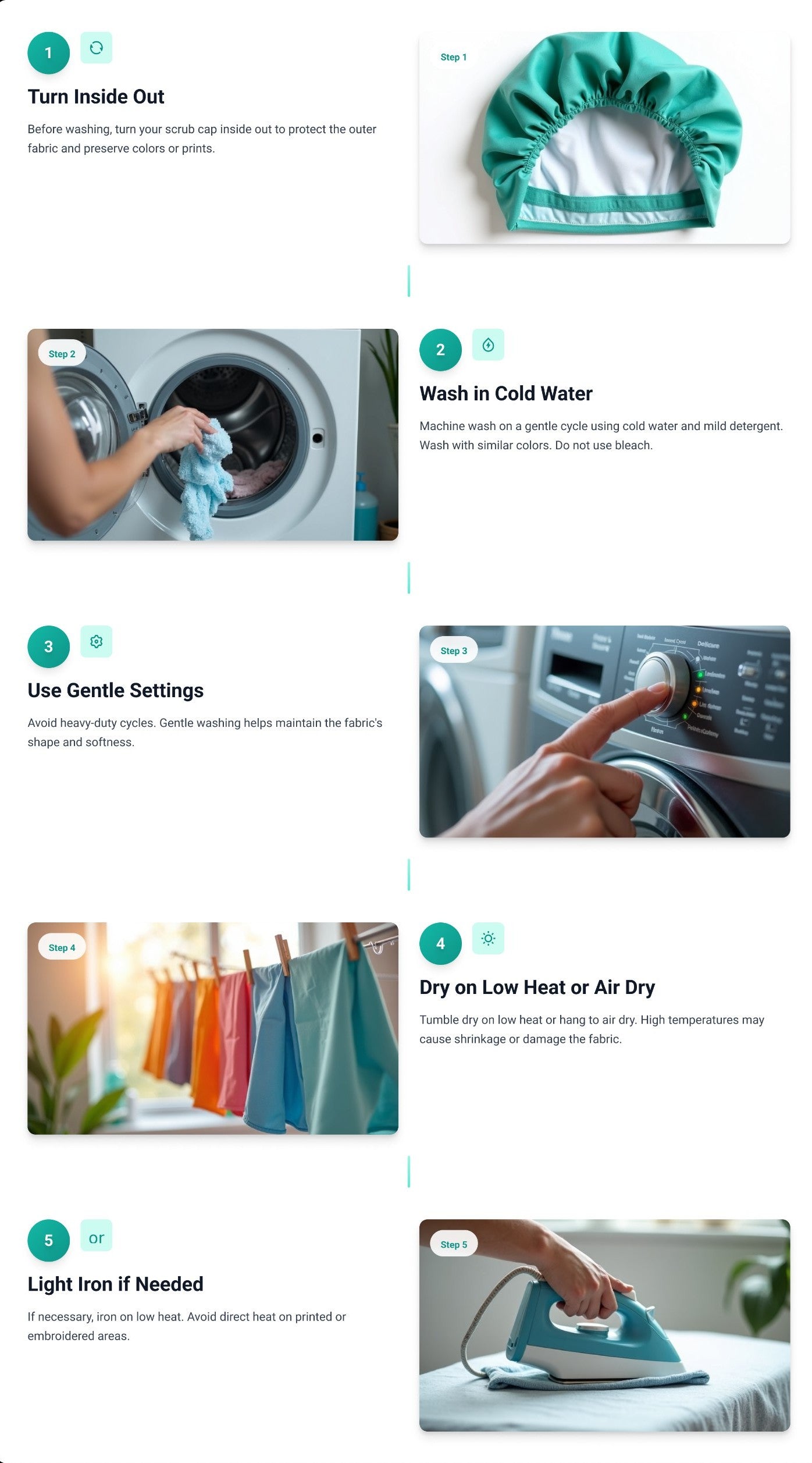 Proper care will help your scrub caps maintain their color, shape, and comfort for a long time. Follow these simple steps to keep them looking professional and fresh.