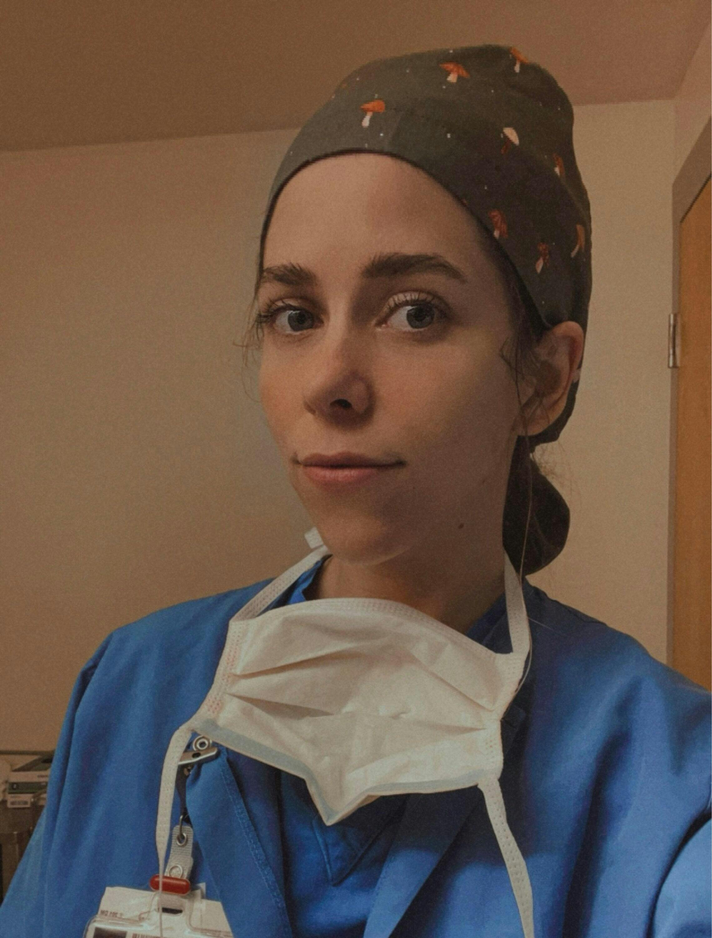 Autumn Mushroom Ponytail scrub cap for women with satin lined option by Paradise Caps.