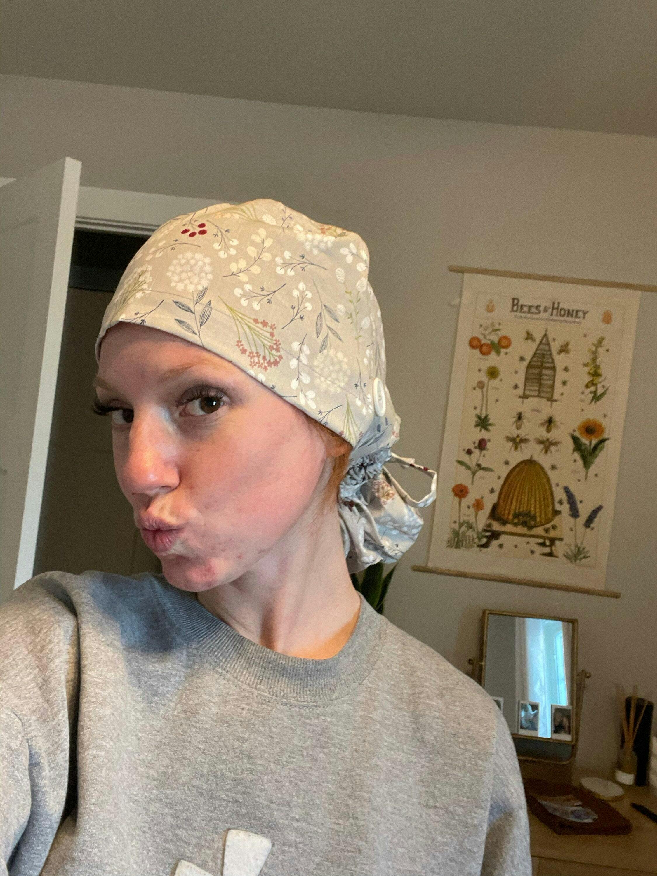 Flower Ponytail scrub cap for women with satin lined option by Paradise Caps.