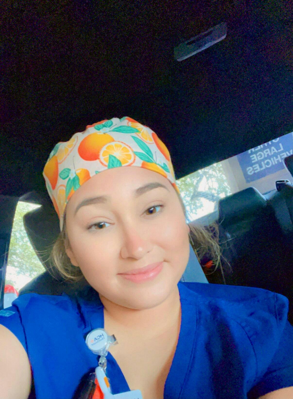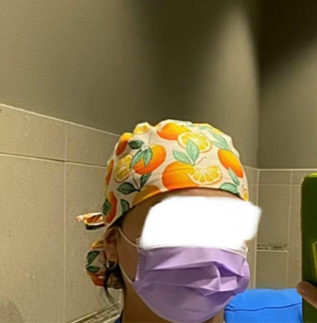 Orange Ponytail scrub cap for women with satin lined option by Paradise Caps.